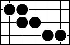 "Пункты свободы" - это пустые пересечения примыкающих к камню или группе камней линий. Например, у этой группы из двух камней шесть пунктов свободы: